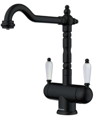 Прекрасно сочетается с мойками из композитного материала, акрилового или натурального камня, нержавеющей стали или керамики