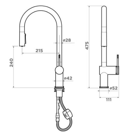·      Гибкий, а так же выдвижной шланг обеспечивает прекрасную мобильность в использовании выдвижного излива, а переключение воды: душ/струя легко оплеснёт не только посуду от мыльных растворов благодаря душевой лейке, но и позволит помыть мясо, рыбу, овощи и т.д.